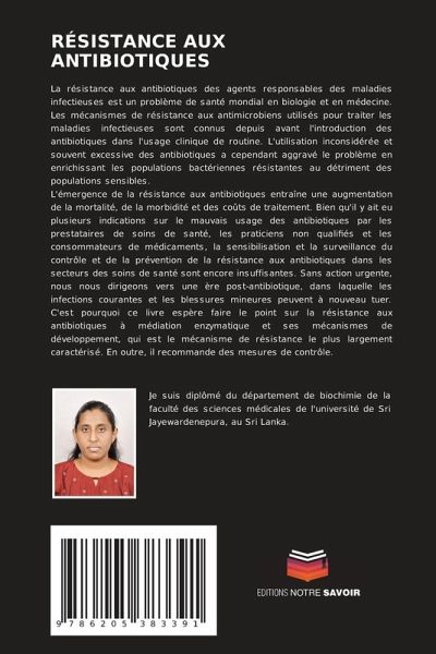 La résistance aux antibiotiques des agents responsables des maladies infectieuses est un problème de santé mondial en biologie et en médecine. Les mécanismes de résistance aux antimicrobiens utilisés pour traiter les maladies infectieuses sont connus depuis avant l'introduction des antibiotiques dans l'usage clinique de routine. L'utilisation inconsidérée et souvent excessive des antibiotiques a cependant aggravé le problème en enrichissant les populations bactériennes résistantes au détriment des populations sensibles. L'émergence de la résistance aux antibiotiques entraîne une augmentation de la mortalité, de la morbidité et des coûts de traitement. Bien qu'il y ait eu plusieurs indications sur le mauvais usage des antibiotiques par les prestataires de soins de santé, les praticiens non qualifiés et les consommateurs de médicaments, la sensibilisation et la surveillance du contrôle et de la prévention de la résistance aux antibiotiques dans les secteurs des soins de santé sont encore insuffisantes. Sans action urgente, nous nous dirigeons vers une ère post-antibiotique, dans laquelle les infections courantes et les blessures mineures peuvent à nouveau tuer. C'est pourquoi ce livre espère faire le point sur la résistance aux antibiotiques à médiation enzymatique et ses mécanismes de développement, qui est le mécanisme de résistance le plus largement caractérisé. En outre, il recommande des mesures de contrôle.