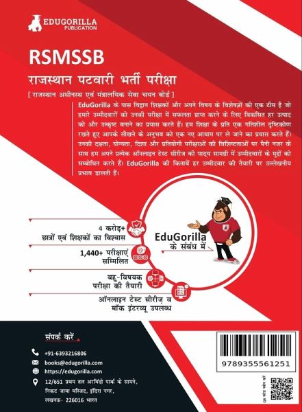 ¿ Best Selling Book in Hindi Edition for Rajasthan Patwari Exam with objective-type questions as per the latest syllabus given by the RSMSSB. ¿ Compare your performance with other students using Smart Answer Sheets in EduGorilla's Rajasthan Patwari Exam Practice Kit. ¿ Rajasthan Patwari Exam Preparation Kit comes with 10 Full-length Mock Tests with the best quality content. ¿ Increase your chances of selection by 16X. ¿ Rajasthan Patwari Exam Prep Kit comes with well-structured and 100% detailed solutions for all the questions. ¿ Clear exam with good grades using thoroughly Researched Content by experts.