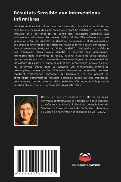 Les interventions infirmières dans les unités de soins de longue durée, en réponse aux besoins des personnes qui y sont hospitalisées, doivent être évaluées et il est impératif de définir des indicateurs sensibles aux interventions infirmières. Le modèle d'efficacité des rôles infirmiers analyse la relation entre les variables de structure, de processus et de résultats et est utilisé comme modèle de recherche, fournissant un soutien conceptuel à l'étude présentée, intégrant la théorie du déficit d'auto-soins et la théorie des transitions. Nous avons identifié le potentiel des interventions infirmières dans le contexte du réseau national intégré de soins continus, en tant que réponse aux besoins des personnes âgées, et systématisé les indicateurs des gains de santé résultant des interventions infirmières pour les personnes âgées dans ce contexte. Les interventions infirmières développées, basées sur les différentes dimensions du modèle proposé, montrent l'intervention autonome de l'infirmière, ce qui permet de comprendre l'obtention de résultats sensibles basés sur des indicateurs pour lesquels des formules ont été construites afin de soutenir la prise de décision clinique dans le domaine des soins infirmiers.