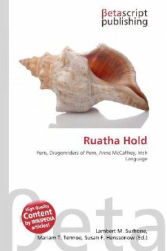 Please note that the content of this book primarily consists of articles available from Wikipedia or other free sources online. Ruatha Hold is a hold, or dwelling-place (literally a castle), on the fictional planet of Pern in the series of "The Dragonriders of Pern" by Anne McCaffrey. Ruatha was the third major hold to be established on Pern. Its founders were Peter "Red" Hanrahan, his wife and their children. The name comes from the Irish "Rua" (red) and "atha" (ford), or "Red''s ford" although grammatically translated as "Ford Red". The correct Irish would be Ath Rua. Ruatha is one of the principal Holds of Pern, and is famous for its runnerbeasts (descendants of horses) and Dragonriders. Ruatha was the home to Lord Alessan, Lord Leef, Weyrwoman Torene, and Lessa, Weyrwoman of Benden Weyr in the ninth pass. Fax conquered the Hold, but when Fax was killed by Lessa''s future weyrmate F''lar, Fax''s infant son, Jaxom, was proclaimed Lord Holder, even though Lessa had the stronger claim to the title. F''lar took Lessa to Benden Weyr, where she Impressed the queen dragon Ramoth. Jaxom (whose mother Gemma had died giving birth) was reared by Lord Warder Lytol (former brownrider L''tol).