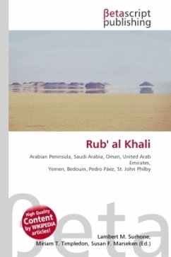 High Quality Content by WIKIPEDIA articles! The Rub' al Khali, which translates as Empty Quarter in English, is one of the largest sand deserts in the world, encompassing most of the southern third of the Arabian Peninsula, including southern Saudi Arabia, and areas of Oman, the United Arab Emirates and Yemen. The desert covers some 650,000 square kilometres, more than the combined land areas of the Netherlands, Belgium, and France. The desert is 1,000 kilometres (620 mi) long, and 500 kilometres (310 mi) wide, and is neither inhabited nor traversed by the Bedouins. After Pedro Páez's presence in the late Sixteenth Century, the first documented journeys by Westerners were made by Bertram Thomas in 1931 and St. John Philby in 1932. Between 1946 and 1950 Wilfred Thesiger crossed the area several times and mapped large parts including the mountains of Oman.