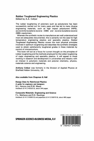 Rubber Toughened Engineering Plastics covers the main physical principles involved in optimum toughening in high temperature engineering plastics and speciality plastics and describes the synthetic strategies used to obtain satisfactorily toughened grades in these materials by control of microstructure. This book will act as a focus for current thought on the principles of rubber toughening and the methods employed for the rubber toughening of major engineering and speciality plastics.