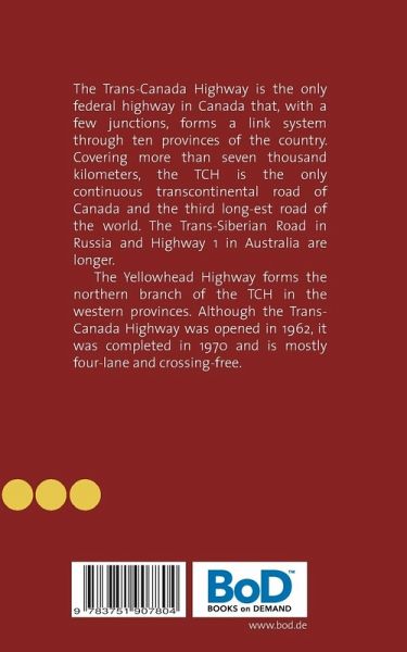 The Trans-Canada Highway is the only federal highway in Canada that, with a few junctions, forms a link system through ten provinces of the country. Covering more than seven thousand kilometers, the TCH is the only continuous transcontinental road of Canada and the third long-est road of the world. The Trans-Siberian Road in Russia and Highway 1 in Australia are longer. The Yellowhead Highway forms the northern branch of the TCH in the western provinces. Although the Trans-Canada Highway was opened in 1962, it was completed in 1970 and is mostly four-lane and crossing-free.