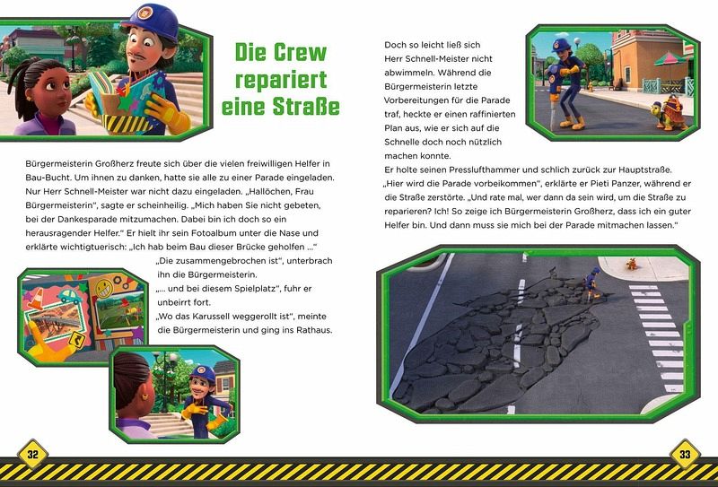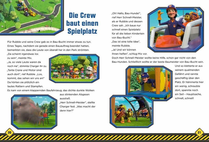 Rubble freut sich riesig auf das lang geplante Treffen mit seiner Familie. Doch dann kommt alles anders als erwartet. Denn im nahe gelegenen Städtchen Bau-Bucht werden die Bau-Hunde dringend gebraucht, um eine Brücke zu bauen, einen Spielplatz anzulegen und die Hauptstraße zu reparieren. Begleite Rubble und seine Crew bei drei spannenden Einsätzen!