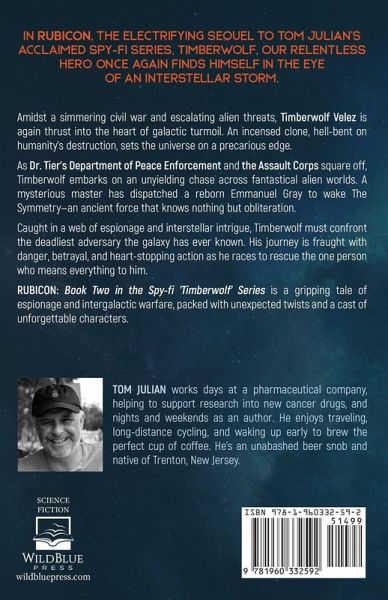 In RUBICON, the electrifying second installment in Tom Julian's acclaimed spy-fi series, TIMBERWOLF, our relentless hero once again finds himself in the eye of an interstellar storm. Amidst a simmering civil war and escalating alien threats, Timberwolf Valaz is again thrust into the heart of galactic turmoil. An incensed clone, hell-bent on humanity's destruction, sets the universe on a precarious edge. As Dr. Tier's Department of Peace Enforcement and the Assault Corps square off, Timberwolf embarks on an unyielding chase across fantastical alien worlds. A mysterious master has dispatched a reborn Emmanuel Gray to wake The Symmetry-an ancient force that knows nothing but obliteration. Caught in a web of espionage and interstellar intrigue, Timberwolf must confront the deadliest adversary the galaxy has ever known. His journey is fraught with danger, betrayal, and heart-stopping action as he races to rescue the one person who means everything to him. RUBICON: Book Two in the Spy-fi 'Timberwolf' Series is a gripping tale of espionage and intergalactic warfare, packed with unexpected twists and a cast of unforgettable characters.
