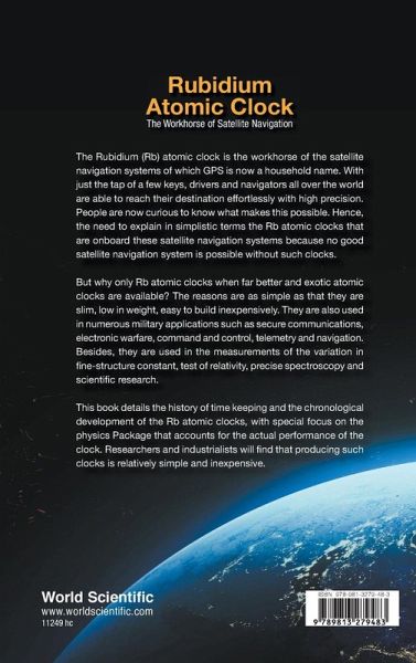 The Rubidium atomic clock (Rb) is the workhorse of the satellite navigation systems of which GPS is now a household name. With just the tap of a few keys, drivers and navigators all over the world are able to reach their destination effortlessly with high precision. People are now curious to know what makes this possible. Hence, the need to explain in simplistic terms the Rb atomic clocks that are onboard these satellite navigation systems because no good satellite navigation system is possible without such clocks. But why only Rb atomic clocks when far better and exotic atomic clocks are available? The reasons are as simple as that they are slim, low in weight, easy to build inexpensively. They are also used in numerous military applications such as secure communications, electronic warfare, command and control, telemetry and navigation. Besides, they are used in the measurements of the variation in fine-structure constant, test of relativity, precise spectroscopy and scientific research. This book details the history of time keeping and the chronological development of the Rb atomic clocks, with special focus on the physics Package that accounts for the actual performance of the clock. Researchers and industrialists will find that producing such clocks is relatively simple and inexpensive.