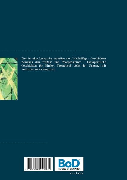 Dies ist eine Leseprobe. Auszüge aus: "Nachtflüge - Geschichten zwischen den Welten" und "Morgensterne" - Therapeutische Geschichten für Kinder. Thematisch steht der Umgang mit Verlusten im Vordergrund.