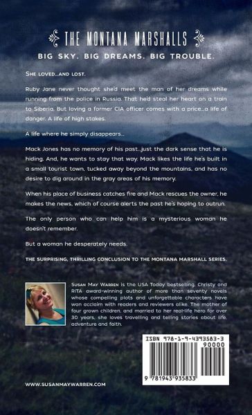 She loved...and lost. Ruby Jane never thought she'd meet the man of her dreams while running from the police in Russia. That he'd steal her heart on a train to Siberia. But loving a former CIA officer comes with a price...a life of danger. A life of high stakes. A life where he simply disappears... He has no memory of the man he was. Mack Jones has no memory of his past...just the dark sense that he is hiding. And he wants to stay that way. Mack likes the life he's built in a small tourist town tucked away beyond the mountains and has no desire to dig around in the gray areas of his memory. When his place of business catches fire and Mack rescues the owner he makes the news which of course alerts the past he's hoping to outrun. The only person who can help him is a mysterious woman he doesn't remember. But a woman he desperately needs. The surprising thrilling conclusion to the Montana Marshalls series.
