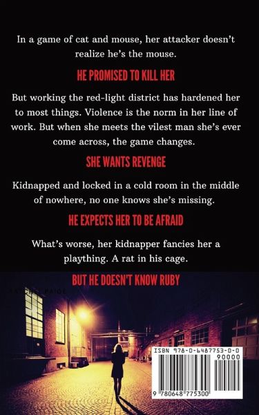 In a thrilling game of cat and mouse, her attacker doesn’t realize he’s the mouse. Ruby’s no stranger to aggressive men. In her line of work, in the red-light district, violence is the norm. But when she meets the vilest man she’s ever come across, the game changes. Kidnapped. Locked in a cold room in the middle of nowhere, no one know’s she’s missing. What’s worse, her kidnapper fancies her a plaything. A rat in his cage. He expects her to be afraid. He expects her to bend to his will. But he doesn’t know Ruby. If she can’t have justice, she will only settle for revenge.