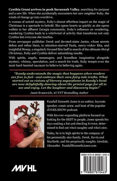 Cynthia Grant arrives in posh Savannah Valley, searching for purpose and a new life. When she accidentally encounters her new neighbor Ruby, the winds of change go into overdrive. A woman of untold mystery, Ruby's almost effortless impact on the magic of Christmas is a spectacle to behold. She opens hearts as quickly as she opens wallets in her affluent Georgia community. Ruby's influence on wondering, wandering Cynthia leads to a whirlwind of activity that transforms not only Cynthia but everyone she touches.From newspaper publisher Derek and devoted-sister Janice, whose secrets define and refine them, to attention-starved Paula, merry-widow Etta, and insightful Streep, a singularly focused film buff in search of the ultimate Meryl Christmas, Ruby and Cynthia deliver astonishing results.With spirits, angels, messengers, and boundless imagination alongside mystery, whimsy, speculation, and a search for truth, Ruby tempts even the most hard-hearted naysayer to believe in believing again.