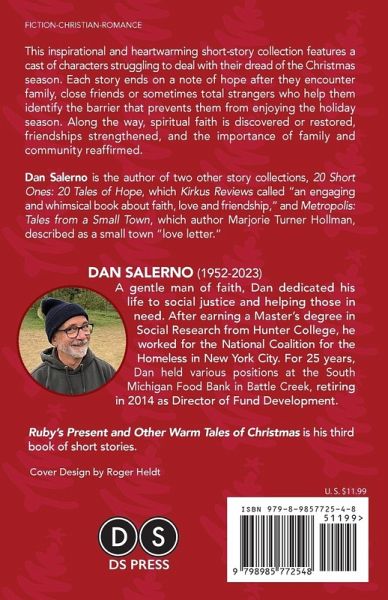 This inspirational and heartwarming short-story collection features a cast of characters struggling to deal with their dread of the Christmas season. Each story ends on a note of hope after they encounter family, close friends or sometimes total strangers who help them identify the barrier that prevents them from enjoying the holiday season. Along the way, spiritual faith is discovered or restored, friendships strengthened, and the importance of family and community reaffirmed.Dan Salerno is the author of two other story collections, 20 Short Ones: 20 Tales of Hope, which Kirkus Reviews called "an engaging and whimsical book about faith, love, and friendship," and Metropolis: Tales from a Small Town, which author Marjorie Turner Hollman, described as a small town "love letter."