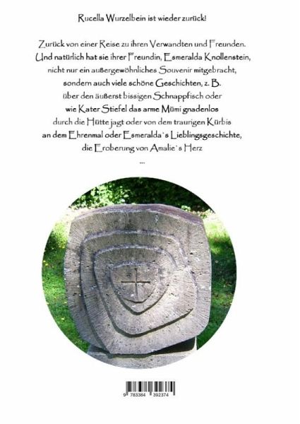 Rucella Wurzelbein ist wieder zurück!Zurück von einer Reise zu ihren Verwandten und Freunden. Und natürlich hat sie ihrer Freundin, Esmeralda Knollenstein,nicht nur ein außergewöhnliches Souvenir mitgebracht, sondern auch viele schöne Geschichten, z. B.über den äußerst bissigen Schnappfisch oderwie Kater Stiefel das arme Mümi gnadenlosdurch die Hütte jagt oder von dem traurigen Kürbisan dem Ehrenmal oder Esmeralda`s Lieblingsgeschichte,die Eroberung von Amalie`s Herz ...