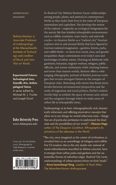 Bettina Stoetzer traces the more-than-human relationships between people, plants, and animals in contemporary Berlin, showing how Berlin's "urban nature" becomes a key site in which notions of citizenship and belonging as well as racialized, gendered, and classed inequalities become apparent.