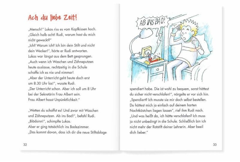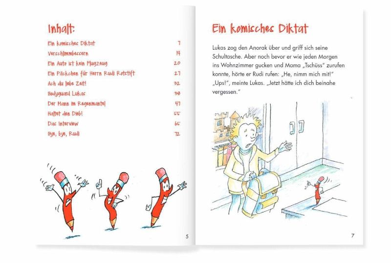 Zuerst war es Lukas peinlich, Rudi Rotstift den ganzen Tag hinter sein Ohr zu stecken. Aber das war er seinem Freund, dem Rotstift der Lehrerin, schließlich schuldig. Rudi wollte doch immer mit dabei sein und ihm war es egal, ob die anderen darüber lachten. Doch schon bald wurde der rote Bleistift hinterm Ohr in der ganzen Schule zu Lukas Markenzeichen. Und weil Lukas seitdem nicht mehr so schüchtern war, fand er endlich auch Freunde. Und die brauchte er auch, als ihm Rudi ausgerechnet an seinem Geburtstag geklaut wurde ...