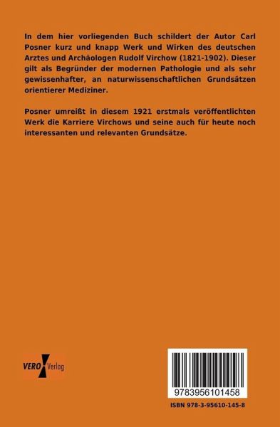 Posner umreißt in diesem 1921 erstmals veröffentlichten Werk die Karriere Virchows und seine auch für heute noch interessanten und relevanten Grundsätze.