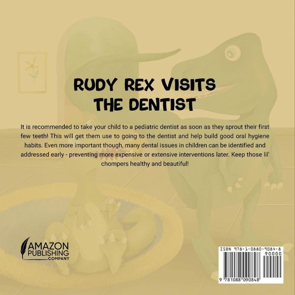 A little T-rex named Rudy finds out he's going to visit the dentist for the first time and he feels a little scared. He soon discovers there was nothing to be nervous about at all! It is recommended to take your child to a pediatric dentist as soon as they sprout their first few teeth! This will get them use to going to the dentist and help build good oral hygiene habits. Even more important though, many dental issues in children can be identified and addressed early - preventing more expensive or extensive interventions later. Keep those lil' chompers healthy and beautiful!