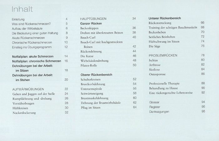 Ein auf die persönliche Bedürfnisse abgestimmtes Rückentraining nützt und hilft, es führt zur Entspannung statt Verspannung. Für schmerzgeplagte Menschen ist dieses Buch deshalb ein absolutes must. Ein leichtes oder - je nach Konstitution - sogar intensives Rückentraining ist auch für Gesunde angesagt, es führt zu bessere Beweglichkeit und Fitness. Sutcliffe geht Schritt für Schritt vor: ein umfassendes Programm mit dem mittelfristigen Ziel der vollständigen Gesundung; falls dies nicht möglich ist, wird Ihnen das Training nachhaltige Schmerzlinderung verschaffen.Sie können herausgreifen, was für Sie am vorteilhaftesten ist. Training eignet sich sowohl für Junge als auch für Frauen und Männer ab Fünfzig.