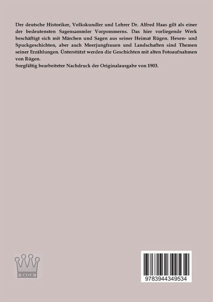 Der deutsche Historiker, Volkskundler und Lehrer Dr. Alfred Haas gilt als einer der bedeutensten Sagensammler Vorpommerns. Das hier vorliegende Werk beschäftigt sich mit Märchen und Sagen aus seiner Heimat Rügen. Hexen- und Spuckgeschichten, aber auch Meerjungfrauen und Landschaften sind Themen seiner Erzählungen. Ünterstützt werden die Geschichten mit alten Fotoaufnahmen von Rügen.