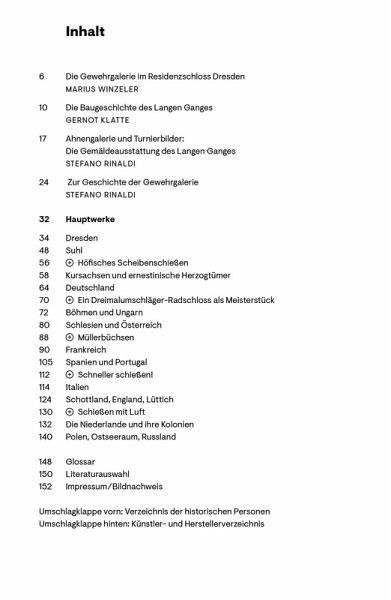 Die Gewehrgalerie im Langen Gang des Dresdner Residenzschlosses präsentiert rund 500 einzigartige Handfeuerwaffen aus dem Besitz der sächsischen Kurfürsten und Könige. Die prunkvollen Gewehre und Pistolen aus dem 16. bis 19. Jahrhundert dienten der Jagd, dem Scheibenschießen sowie der höfischen Repräsentation. Der neue Museumsführer stellt die Sammlungsgeschichte sowie Architektur und Ausstattung des Langen Ganges vor. Der rund 100 Meter lange Renaissancebau verkörperte mit seiner Ahnengalerie die dynastische Memoria des Herrscherhauses und beherbergte seit 1733 das kurfürstliche "Leibgewehr". Eine reichbebilderte Objektauswahl bietet eine Reise durch drei Jahrhunderte europäischer Büchsenmacher- und Dekorationskunst, wobei die Exponate in ihren vielschichtigen kulturhistorischen Zusammenhängen erläutert werden.