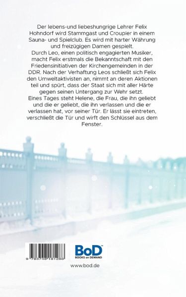 Der lebens-und liebeshungrige Lehrer Felix Hohndorf wird Stammgast und Croupier in einem Sauna- und Spielclub. Es wird mit harter Währung und freizügigen Damen gespielt.Durch Leo, einen politisch engagierten Musiker, macht Felix erstmals die Bekanntschaft mit den Friedensinitiativen der Kirchengemeinden in der DDR. Nach der Verhaftung Leos schließt sich Felix den Umweltaktivisten an, nimmt an deren Aktionen teil und spürt, dass der Staat sich mit aller Härte gegen seinen Untergang zur Wehr setzt. Eines Tages steht Helene, die Frau, die ihn geliebt und die er geliebt, die ihn verlassen und die er verlassen hat, vor seiner Tür. Er lässt sie eintreten, verschließt die Tür und wirft den Schlüssel aus dem Fenster.