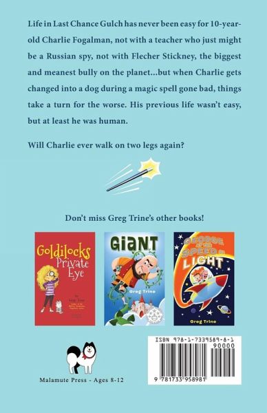 When Charlie's best friend Mike Blackburn's little sister eats his homework, Mike wants revenge. And Charlie knows he must be present to witness the act. After all, what are friends for? "I'm going to change her into a frog," Mike declares, waving a magic wand. This is a good idea. If Charlie had a sister, he'd want to change her into a frog. But something goes awry. Instead of changing Mike's sister into a little green fellow with warts, Charlie Fogalman suddenly isn't quite Charlie Fogalman anymore. He has a bit more fur-and a tail! "Don't tell me you've changed me into a dog." "Okay, I won't tell you." But the proof is in the drool. Mike knows he needs to change Charlie back, but how? What went wrong, and how does he change him back without making the situation worse? In the meantime, where does Charlie live? Not at the Blackburn's house, where the parents are allergic to dogs. And not at Charlie's house, where no one would believe it's really him underneath all the fur. Add to this, a teacher who just might be a Russian spy, an overly zealous dog catcher, and a school bully, and Charlie has plenty to occupy his canine brain. Eventually, the boys discover that the bad spell involved the twisting of light as it passed through Mike's science project, and they find a way to twist it back. But not before they put a bully, a spy, and a dogcatcher in their place.