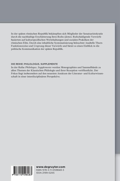 In der politischen Auseinandersetzung überzieht Cicero Mitglieder der Senatsaristokratie mit Schmähungen, um den Leumund, das Ansehen und damit auch den Rang seiner politischen Gegner nachhaltig zu erschüttern. Die rufschädigenden Vorwürfe werden von Cicero nach einem sich inhaltlich gleichenden Muster gestaltet, dessen Funktion und Ursprung die Arbeit erstmals mithilfe eines diskursanalytischen und erzähltheoretischen Ansatzes systematisiert. So können Lebensbereiche, auf die die Argumente Bezug nehmen, wie Kommensalität und Konsum, soziales Umfeld oder Sexualverhalten, als kulturspezifische Diskursfelder erfasst werden. Die Arbeit zeigt, wie die Diffamierungen generiert und - je nach dem sozialen Profil des zu schmähenden Gegners und nach Adressatenkreis - unterschiedlich komponiert werden. Einige implizieren sittliche Devianz, andere werden gar mit Vergehen oder Straftaten assoziiert. Anders als in der bisherigen Forschung wird neben den Reden im Senat, vor Gericht und in der Volksversammlung auch den Briefen Ciceros Bedeutung beigemessen, die weniger als authentische und alltagsnahe Selbstzeugnisse, denn als stilisierte Abhandlungen über Verhaltensstandards gelesen werden.