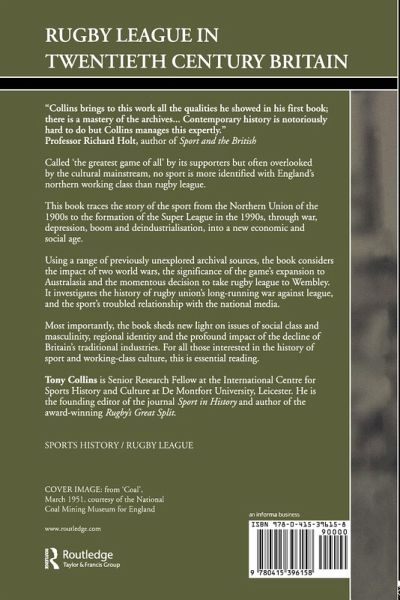 Called 'the greatest game of all' by its supporters but often overlooked by the cultural mainstream, no sport is more identified with England's northern working class than rugby league. This book traces the story of the sport from the Northern Union of the 1900s to the formation of the Super League in the 1990s, through war, depression, boom and deindustrialisation, into a new economic and social age. Using a range of previously unexplored archival sources, this extremely readable and deeply researched book considers the impact of two world wars, the significance of the game's expansion to Australasia and the momentous decision to take rugby league to Wembley. It investigates the history of rugby union's long-running war against league, and the sport's troubled relationship with the national media. Most importantly, this book sheds new light on issues of social class and working-class masculinity, regional identity and the profound impact of the decline of Britain's traditional industries. For all those interested in the history of sport and working-class culture, this is essential reading.