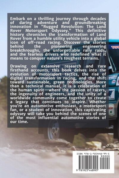 Embark on a thrilling journey through decades of daring adventure and groundbreaking innovation in "Rugged Revolution: The Land Rover Motorsport Odyssey." This definitive history chronicles the transformation of Land Rover from a humble utility vehicle into a global icon of off-road racing. Discover the stories behind the pioneering engineering breakthroughs, the unforgettable rally raids, and the fearless drivers who redefined what it means to conquer nature's toughest terrains. Drawing on extensive research and rare firsthand accounts, this book delves into the evolution of motorsport tactics, the rise of digital transformation in racing, and the shift toward sustainable, green technologies. More than a technical manual, it is a celebration of the human spirit-where the passion of racers, the ingenuity of engineers, and the unity of a worldwide community come together to create a legacy that continues to inspire. Whether you're an automotive enthusiast, a motorsport fan, or a student of innovation, this captivating odyssey will take you behind the scenes of one of the most influential automotive stories of our time.