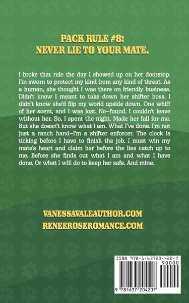 PACK RULE #8: NEVER LIE TO YOUR MATE. I broke that rule the day I showed up on her doorstep. I'm sworn to protect my kind from any kind of threat. As a human, she thought I was there on friendly business. Didn't know I meant to take down her shifter boss. I didn't know she'd flip my world upside down. One whiff of her scent, and I was lost. No-found. I couldn't leave without her. So, I spent the night. Made her fall for me. But she doesn't know what I am. What I've done. I'm not just a ranch hand-I'm a shifter enforcer. The clock is ticking before I have to finish the job. I must win my mate's heart and claim her before the lies catch up to me. Before she finds out what I am and what I have done. Or what I will do to keep her safe. And mine.