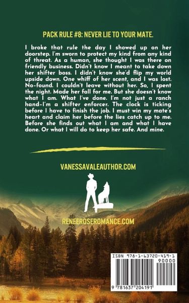 PACK RULE #8: NEVER LIE TO YOUR MATE. I broke that rule the day I showed up on her doorstep. I'm sworn to protect my kind from any kind of threat. As a human, she thought I was there on friendly business. Didn't know I meant to take down her shifter boss. I didn't know she'd flip my world upside down. One whiff of her scent, and I was lost. No-found. I couldn't leave without her. So, I spent the night. Made her fall for me. But she doesn't know what I am. What I've done. I'm not just a ranch hand-I'm a shifter enforcer. The clock is ticking before I have to finish the job. I must win my mate's heart and claim her before the lies catch up to me. Before she finds out what I am and what I have done. Or what I will do to keep her safe. And mine.