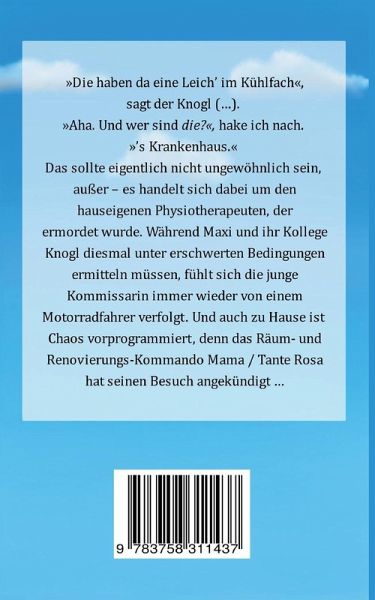 Dass sich im Kühlfach des Krankenkauses eine Leiche befindet sollte eigentlich nicht ungewöhnlich sein, außer, es handelt sich dabei um den hauseigenen Physiotherapeuten, der ermordet wurde. Während Maxi und ihr Kollege Knogl diesmal unter erschwerten Bedingungen ermitteln müssen, fühlt sich die junge Kommissarin immer wieder von einem Motorradfahrer verfolgt.Und auch zu Hause ist Chaos vorprogrammiert, denn das Räum- und Renovierungskommando Mama und Tante Rosa hat seinen Besuch angekündigt.