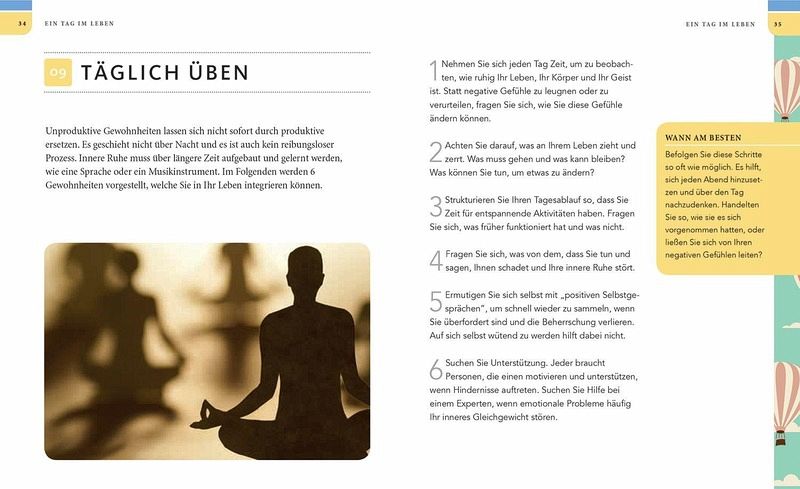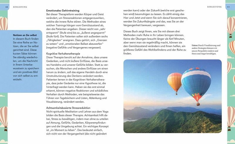 Entfliehen Sie dem Stress und der Belastung des Alltags mit 50 einfachen Übungen.Dr. Arlene K. Unger, klinische Psychologin und Wellnesscoach, bietet Ihnen schnelleund wirksame Achtsamkeits- und Entspannungsübungen, die Ihnen erlauben,runterzukommen und etwas Gelassenheit zu finden - wo immer Sie sind. Das Buchhat die perfekte Größe, um es in die Tasche oder Hosentasche zu stecken, undwurde so entworfen, damit Sie es immer bei sich haben können. Öffnen Sie es, uminnere Ruhe zu finden, wann immer Sie einen Moment des Friedens brauchen.