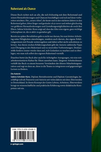 Dieses Buch richtet sich an alle, die sich frühzeitig mit dem Ruhestand und seinen Herausforderungen und Chancen beschäftigen und sich auf diese vorbereiten möchten. Die "neuen Alten", die heute und in den nächsten Jahren in den Ruhestand gehen, leben länger und gesünder als je zuvor und stehen gleichzeitig vor größeren Herausforderungen und Gestaltungsmöglichkeiten als noch ihre Eltern. Sabine Schröder-Kunz zeigt auf, dass das Alter eine eigene, ganz wichtige Lebensphase ist, die es aktiv zu gestalten gilt.