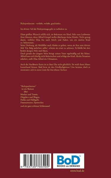 RuhrpottherzenIm dritten Teil der Ruhrpottsaga geht es turbulent zu.Elisa größter Wunsch erfüllt sich, sie bekommt das erste Kind. Sehr zum Leidwesen ihres Mannes, denn Alfred Gimpel wollte eigentlich gar keine Kinder. Nicht genug damit, verführt ihn Elisa nach Strich und Faden, um ein zweites Kind zu bekommen.Seine Drohung, als Holzfäller nach Alaska zu gehen, wenn sie ihm zum dritten Mal 'ein Balg anhängt' scheint sie ernst zu nehmen. Es bleibt bei den beiden Jungen Felix und Matts. Doch gerade der jüngere Sohn Matts bringt seinen Vater regelmäßig auf die Palme. Alfred kann sich häufig nicht beherrschen und schlägt das Kind. Als die Situation eskaliert, stellt Elisa Alfred ein Ultimatum.Auch die Nachbarin Karin ist in ihrer Ehe nicht glücklich. Sie wirft ihren Mann kurzerhand hinaus. Bald lernt sie den Friedhofsgärtner Uwe kennen, doch der hat mehr Interesse an ihrer jüngsten Tochter, als an ihr.'Ruhrpottherzen' ist ein Roman überMacker und Tussis,Döppken und Blagen,Hallas undHalligalli,Fissematenten, Sperenzkes,und ein ganz schönes Schlamassel.