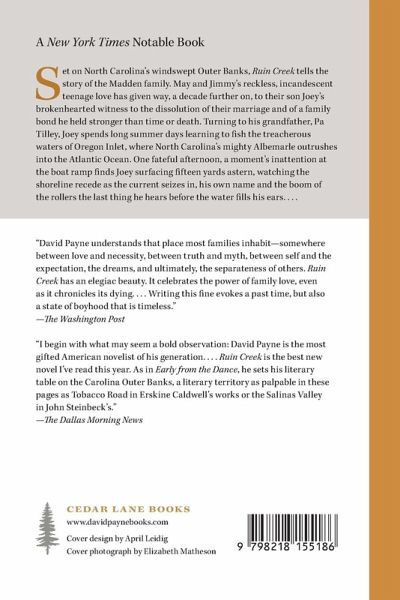 A NEW YORK TIMES NOTABLE BOOK Set on North Carolina's windswept Outer Banks, Ruin Creek tells the story of the Madden family. May and Jimmy's reckless, incandescent teenage love has given way, a decade further on, to their son Joey's brokenhearted witness to the dissolution of their marriage and of a family bond he held stronger than time or death. Turning to his grandfather, Pa Tilley, Joey spends long summer days learning to fish the treacherous waters of Oregon Inlet, where North Carolina's mighty Albemarle outrushes into the Atlantic Ocean. One fateful afternoon, a moment's inattention at the boat ramp finds Joey surfacing fifteen yards astern, watching the shoreline recede as the current seizes in, his own name and the boom of the rollers the last thing he hears before the water fills his ears...