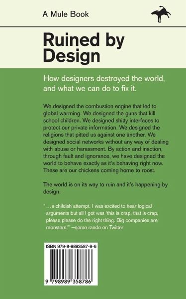 The world is working exactly as we designed it. The combustion engine which is destroying our planet's atmosphere and rapidly making it inhospitable is working exactly as we designed it. Guns, which lead to so much death, work exactly as they're designed to work. And every time we "improve" their design, they get better at killing. Facebook's privacy settings, which have outed gay teens to their conservative parents, are working exactly as designed. Their "real names" initiative, which makes it easier for stalkers to re-find their victims, is working exactly as designed. Twitter's toxicity and lack of civil discourse is working exactly as it's designed to work. The world is working exactly as designed. And it's not working very well. Which means we need to do a better job of designing it. Design is a craft with an amazing amount of power. The power to choose. The power to influence. As designers, we need to see ourselves as gatekeepers of what we are bringing into the world, and what we choose not to bring into the world. Design is a craft with responsibility. The responsibility to help create a better world for all.