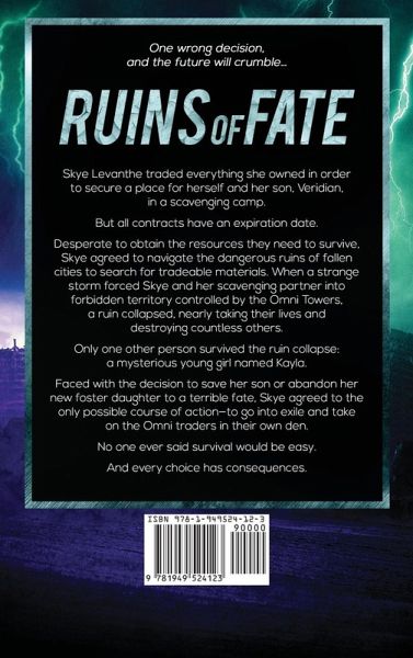 One wrong decision, and the future will crumble… Skye Levanthe traded everything she owned in order to secure a place for herself and her son, Veridian, in a scavenging camp. But all contracts have an expiration date. Desperate to obtain the resources they need to survive, Skye agreed to navigate the dangerous ruins of fallen cities to search for tradeable materials. When a strange storm forced Skye and her scavenging partner into forbidden territory controlled by The Omni Towers, a ruin collapsed, nearly taking their lives and destroying countless others. Only one other person survived the ruin collapse: a mysterious young girl named Kayla. Faced with the decision to save her son or abandon her new foster daughter to a terrible fate, Skye agreed to the only possible course of action-to go into exile and take on the Omni traders in their own den. No one ever said survival would be easy. And every choice has consequences. The Omni Towers is an exciting post-apocalyptic fantasy series with romantic elements and shocking twists. Join Skye as she unearths the secrets of the past and discovers a hidden world no one thought was possible.