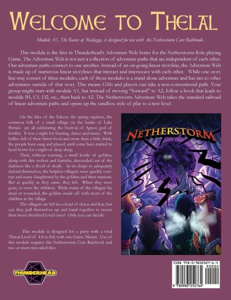 An adventure for the Netherstorm Role-playing Game. At the end of a festive night of celebration, a small town is set upon by goblins and the karitehe. This, however, was no random attack. Kidnapping the village's children and making a hasty retreat has left the town in chaos. Can they band together to rescue their most treasured citizens? Only you can decide.