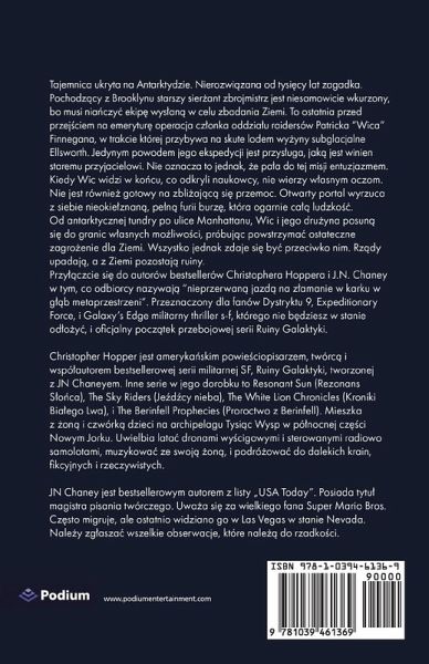 Tajemnica ukryta na Antarktydzie. Nierozwi¿zana od tysi¿cy lat zagadka. Pochodz¿cy z Brooklynu starszy sier¿ant zbrojmistrz jest niesamowicie wkurzony, bo musi niäczy¿ ekip¿ wys¿an¿ w celu zbadania Ziemi. To ostatnia przed przej¿ciem na emerytur¿ operacja cz¿onka oddziäu raidersów Patricka "Wica" Finnegana, w trakcie której przybywa na skute lodem wy¿yny subglacjalne Ellsworth. Jedynym powodem jego ekspedycji jest przys¿uga, jak¿ jest winien staremu przyjacielowi. Nie oznacza to jednak, ¿e päa do tej misji entuzjazmem. Kiedy Wic widzi w köcu, co odkryli naukowcy, nie wierzy w¿asnym oczom. Nie jest równie¿ gotowy na zbli¿aj¿c¿ si¿ przemoc. Otwarty portal wyrzuca z siebie nieokie¿znan¿, pe¿n¿ furii burz¿, która ogarnie cä¿ ludzkö¿. Od antarktycznej tundry po ulice Manhattanu, Wic i jego dru¿yna posun¿ si¿ do granic w¿asnych möliwöci, próbuj¿c powstrzymä ostateczne zagröenie dla Ziemi. Wszystko jednak zdaje si¿ by¿ przeciwko nim. Rz¿dy upadaj¿, a z Ziemi pozostaj¿ ruiny. Przy¿¿czcie si¿ do autorów bestsellerów Christophera Hoppera i J.N. Chaney w tym, co odbiorcy nazywaj¿ "nieprzerwan¿ jazd¿ na z¿amanie w karku w g¿¿b metaprzestrzeni". Przeznaczony dla fanów Dystryktu 9, Expeditionary Force, i Galaxy's Edge militarny thriller s-f, którego nie b¿dziesz w stanie od¿öy¿, i oficjalny pocz¿tek przebojowej serii Ruiny Galaktyki. Whether or not you've read Ruins of the Galaxy, jump right into Ruins of the Earth. I usually read prequels of Series that I loved (as I did ROTG) out of some weird sense of obligation- and they never fail to fall short. So I was DELIGHTED to find myself liking this story - dare I say it - even more than ROTG. It's exciting, fast-paced Sci-fi with great characters, and some very clever twists and turns. Add some truly nasty baddies, offet by some very funny "Are you kidding me? Hahaha!" moments and I am totally hooked. Amazon Reader