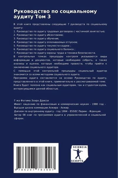 V ätoj knige predstawleny sleduüschie 7 rukowodstw po social'nomu auditu:1. Rukowodstwo po auditu trudowyh dogoworow s chastichnoj zanqtost'ü;2. Rukowodstwo po auditu absenteizma;3. Rukowodstwo po auditu obucheniq;4. Rukowodstwo po auditu oplachiwaemyh otpuskow;5. Rukowodstwo po auditu tekuchesti kadrow ;6. Rukowodstwo po auditu social'nogo balansa ;7. Rukowodstwo po auditu ohrany truda i tehniki bezopasnosti.V kontrol'nyh tochkah procedury kontrolq ukazywaütsq widy informacii i dokumentow, kotorye neobhodimo sobrat', a takzhe analizy i ocenki, kotorye neobhodimo prowesti, chtoby prijti k zaklücheniü social'nogo auditora. S pomosch'ü ätoj kontrol'noj procedury social'nyj auditor znakomitsq so wsemi metodami social'nogo audita.Programma audita sostawlqetsq na osnowe Rukowodstwa po auditu, predstawlennogo w ätoj knige, primenitel'no k rassmatriwaemoj teme.Kniga budet polezna kak social'nym auditoram, tak i studentam wuzow, interesuüschimsq dannoj oblast'ü.