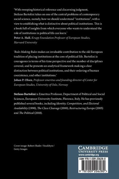 Introduction: Institutions and political science Part I. On Institutions: 1. The origins of institutions 2. Approaches to institutions 3. A framework for institutional analysis and a typology of institutions Part II. On Political Institutions: 4. What political institutions are 5. Meso-institutions: political institutes 6. Macro-institutions: territories, constitutions and regimes 7. Conclusion: specificities of political institutions.