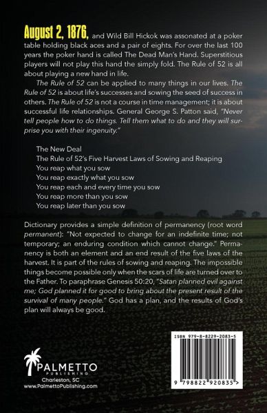 The Rule of 52's Five Harvest Laws of Sowing and Reaping (Planting and Picking) You reap what you sow You reap exactly what you sow You reap each and every time you sow You reap more than you sow You reap later than you sow Apply The Harvest Rules The reality is we cannot do anything about last year's harvest. However, we can do something about this year's harvest, and we can start today. Christ Centered Reality stresses we must stop being a hostage of the past abnormal reality. We live in the here and now. It is easier to redirect the living than to resurrect the dead. The choices we make…mehr