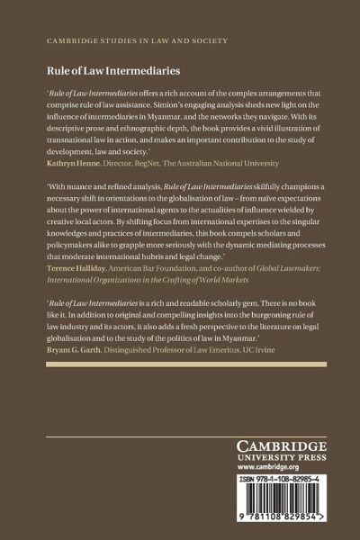 During Myanmar's political opening, intermediaries played a key role in the field of rule of law development.This book brings to light these neglected players, focusing on who they are, the influence they have, their double agency, their challenges and their crucial importance for rule of law progress.
