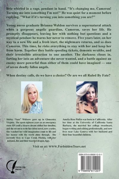 Brie whirled in a rage, pendant in hand, "It's changing me, Cameron! Turning me into something I'm not." He was quiet for a moment before replying, "What if it's turning you into something you are?" Young nurse graduate Brianna Weldon Survives a supernatural attack when a gorgeous angelic guardian, Cameron, saves her life. He promptly disappears, leaving her with nothing but questions and a mystical pendant he warns her never to remove. Five years later, on her way to a new life and a fresh start, the nightmare returns, and so does Cameron. This time, he risks everything to stay with her and keep her from harm. Together they battle speeding tickets, demonic wraiths, and their irresistible attraction to one another. The darkness closes in, forcing her into an adventure she never wanted and a battle against an enemy more powerful than either of them could have imagined - one of seven deadly fallen angels. When destiny calls, do we have a choice? Or are we all Ruled By Fate?