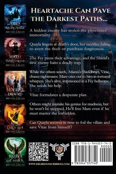 Heartache Can Pave the Darkest Paths... A hidden enemy has stolen the phoenixes' immortality. Quayla lingers at death's door, her sacrifice failing to avert the theft or purchase forgiveness. The Fey press their advantage, and the Shield's new enemy baits a deadly trap. While the others search, Atlanta's Shieldheart, Vitae, chases nightmares. Mare cries out to him in tortured whispers. She's alive, imprisoned in a Fey hellscape. She needs his help. Vitae formulates a desperate plan. Others might mistake his genius for madness, but he won't be stopped. He'll free Mare even if he must master the forbidden. Can Quayla recover in time to foil the villain and save Vitae from himself?