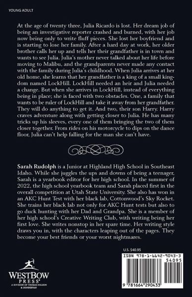 At the age of twenty three, Julia Ricardo is lost. Her dream job of being an investigative reporter crashed and burned, with her job now being only to write fluff pieces. She lost her boyfriend and is starting to lose her family. After a hard day at work, her older brother calls her up and tells her their grandfather is in town and wants to see Julia. Julia's mother never talked about her life before moving to Malibu, and the grandparents never made any contact with the family during Julia's childhood. When Julia arrives at her old home, she learns that her grandfather is a king of a small kingdom named LockHill. LockHill needed an heir and Julia needed a change. But when she arrives in LockHill, instead of everything being in place; she is faced with two obstacles. One, a family that wants to be ruler of LockHill and take it away from her grandfather. They will do anything to get it. And two, their son Harry. Harry craves adventure along with getting closer to Julia. He has many tricks up his sleeves, every one of them bringing the two of them closer together. From rides on his motorcycle to dips on the dance floor, Julia can't help falling for the man she can't have.