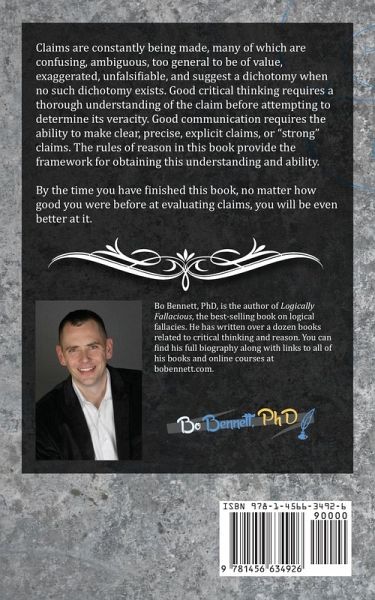 Claims are constantly being made, many of which are confusing, ambiguous, too general to be of value, exaggerated, unfalsifiable, and suggest a dichotomy when no such dichotomy exists. Good critical thinking requires a thorough understanding of the claim before attempting to determine its veracity. Good communication requires the ability to make clear, precise, explicit claims, or "strong" claims. The rules of reason in this book provide the framework for obtaining this understanding and ability. This book is about the eleven rules of reason for making and evaluating claims. Each covered in detail in the book. These are: 1) Acknowledge the Limits of Your Knowledge Regarding the Claim. 2) Explore Your Biases Related to the Claim. 3) Isolate the Actual Claim. 4) Clearly and Precisely Define Each Relevant Term. 5) Use Terms That Reflect the Scope of the Claim Accurately. 6) Operationalize Terms When Possible. 7) Make the Claim Falsifiable When Possible. 8) Express an Accurate and Meaningful Level of Confidence. 9) Convert Causes to Contributing Factors When Appropriate. 10) Make Strong Analogies and Call Out Weak Ones. 11) Filter All Relevant Assumptions Through These Same Rules. By the time you have finished this short book, no matter how good you were before at evaluating claims, you will be even better at it.
