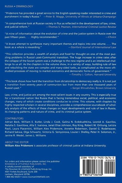 Law, crime, and justice are among the most salient issues in any country. This is especially true for a transitional nation like Russia that is facing tremendous social, political, and economic changes, many of which create conditions conducive to crime. This volume, with chapters by highly respected scholars in several disciplines, provides a comprehensive sourcebook of scholarly analysis of the effects of these changes on legal developments and rule of law in Russia, its changing patterns and nature of crime, and its criminal justice system.