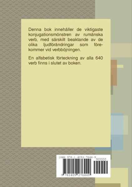 Denna bok innehåller de viktigaste konjugationsmönstren av rumänska verb, med särskilt beaktande av de olika ljudförändringar som förekommer vid verbböjningen. En alfabetisk förteckning av alla 640 verb finns i slutet av boken.