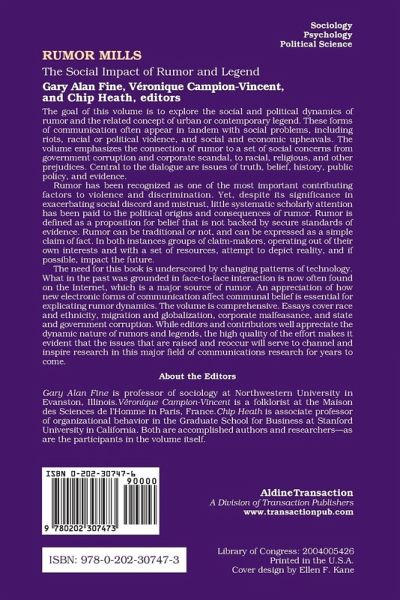 The goal of this volume is to explore the social and political dynamics of rumor and the related concept of urban or contemporary legend. These forms of communication often appear in tandem with social problems, including riots, racial or political violence, and social and economic upheavals. The volume emphasizes the connection of rumor to a set of social concerns from government corruption and corporate scandal, to racial, religious, and other prejudices. Central to the dialogue are issues of truth, belief, history, public policy, and evidence. Rumor has been recognized as one of the most important contributing factors to violence and discrimination. Yet, despite its significance in exacerbating social discord and mistrust, little systematic scholarly attention has been paid to the political origins and consequences of rumor. Rumor is defined as a proposition for belief that is not backed by secure standards of evidence. Rumor can be traditional or not, and can be expressed as a simple claim of fact. In both instances groups of claim-makers, operating out of their own interests and with a set of resources, attempt to depict reality, and if possible, impact the future. The need for this book is underscored by changing patterns of technology. What in the past was grounded in face- to-face interaction is now often found on the Internet, which is a major source of rumor. An appreciation of how new electronic forms of communication affect communal belief is essential for explicating rumor dynamics. The volume is comprehensive. Essays cover race and ethnicity, migration and globalization, corporate malfeasance, and state and government corruption. While editors and contributors well appreciate the dynamic nature of rumors and legends, the high quality of the effort make it evident that the issues that are raised and reoccur will serve to channel and inspire research in this major field of communications research for years to come.